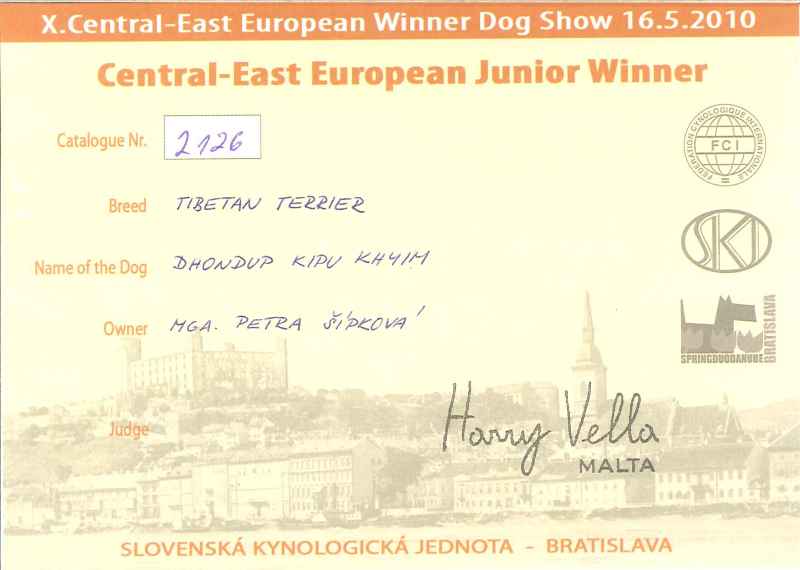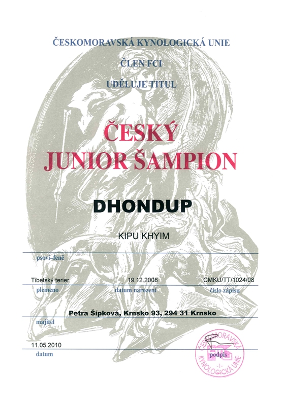 Junior šampion ČR, Slovenska (Junior Champion of the Czech Rep., Slovakia),
